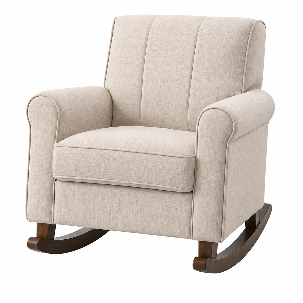 Silla mecedora de madera con tela de poliéster beige