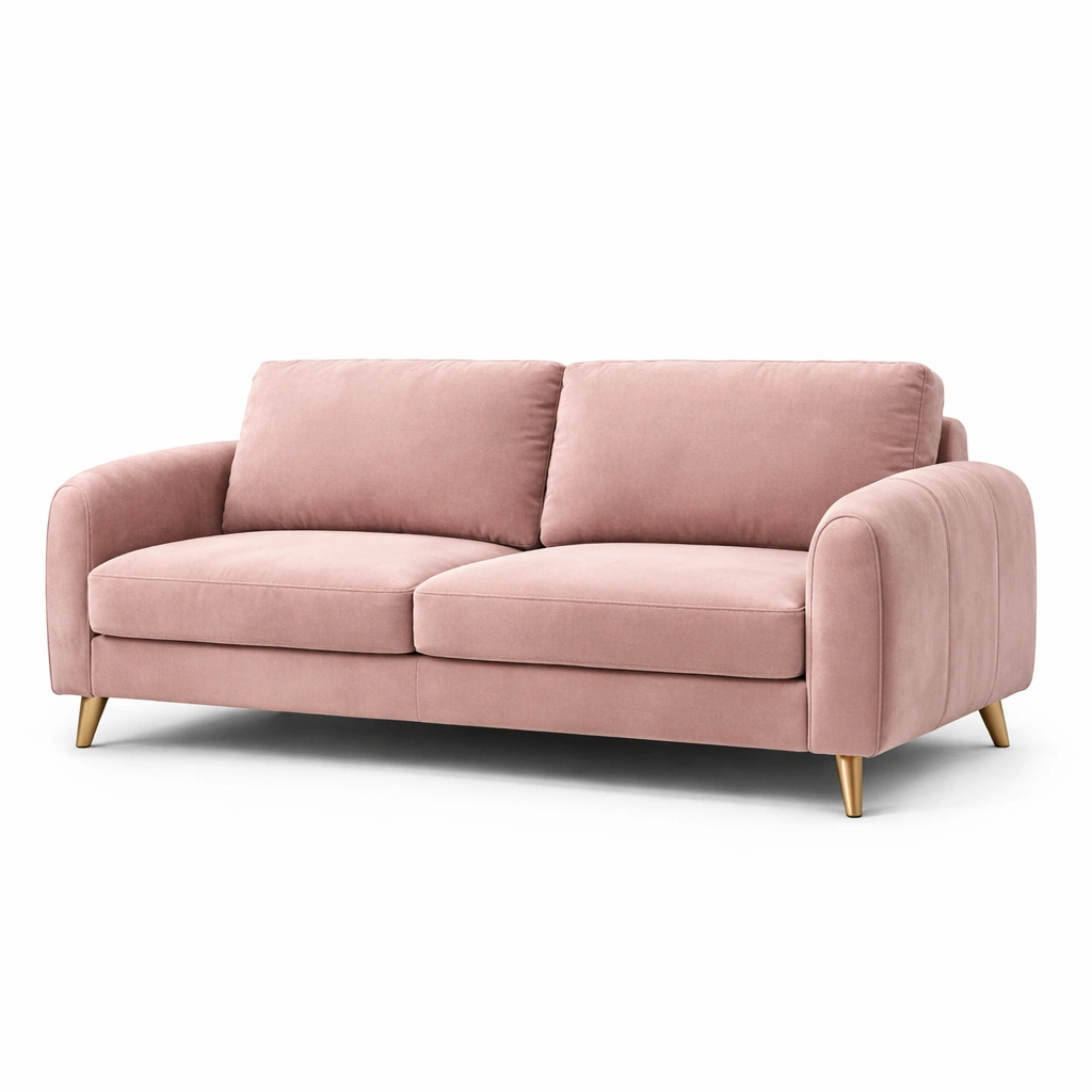 Sofá de terciopelo rosa con patas metálicas de 2 plazas
