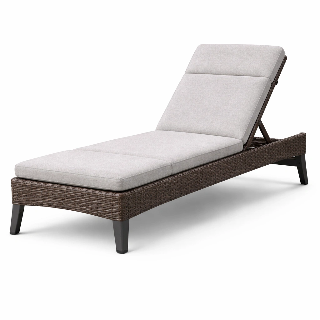 Tumbona de ratán con cojín gris